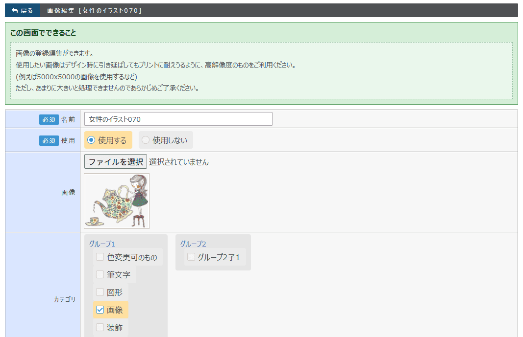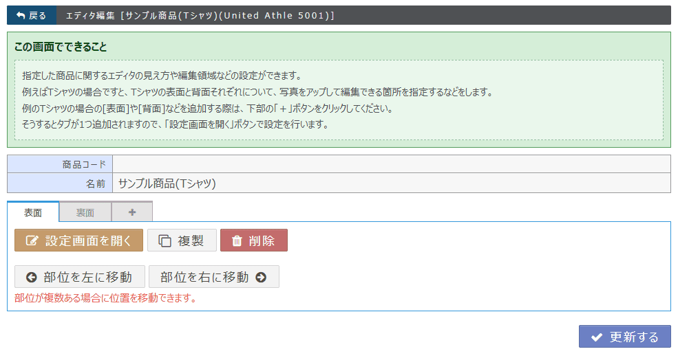 デザインシミュレータ上の文言やロゴなどを設定できる機能を備えています。また、管理画面の操作説明マニュアルも完備しています。