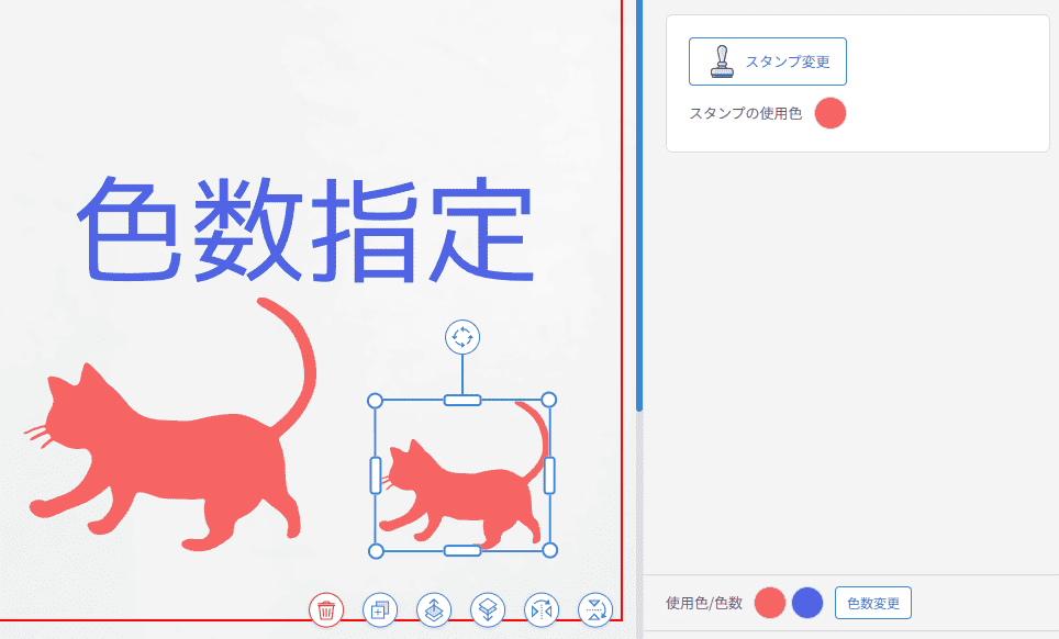 管理画面からスタンプなどを自由に登録できます。素材集も搭載しており、使いたい素材を取り込むことができます。